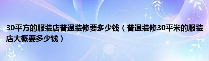 30平方的服装店普通装修要多少钱(普通装修30平米的服装店大概要多少钱)
