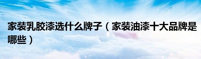 家装乳胶漆选什么牌子(家装油漆十大品牌是哪些)