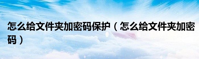 怎么给文件夹加密码保护(怎么给文件夹加密码)