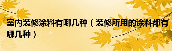 室内装修涂料有哪几种(装修所用的涂料都有哪几种)