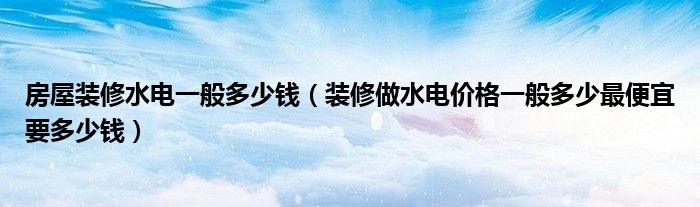 导读 大家好,精选小编来为大家解答以上的问题。房屋装修水电一般多少钱,装修做水电价格一般多少最便宜要多少钱很多人还不知道,现在让我们一起