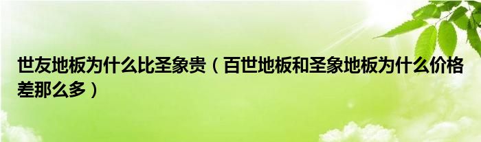 世友地板为什么比圣象贵(百世地板和圣象地板为什么价格差那么多)
