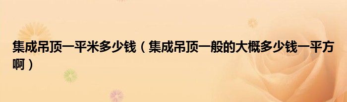 导读 大家好,小编慧慧来为大家解答以上的问题。集成吊顶一平米多少钱,集成吊顶一般的大概多少钱一平方啊很多人还不知道,现在让我们一起来看看