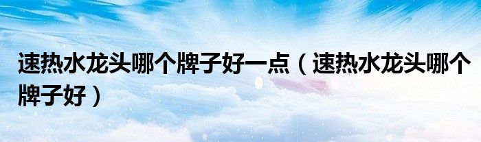 速热水龙头哪个牌子好一点(速热水龙头哪个牌子好)