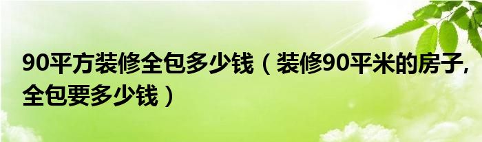 导读 大家好,精选小编来为大家解答以上的问题。90平方装修全包多少钱,装修90平米的房子,全包要多少钱很多人还不知道,现在让我们一起来看看吧