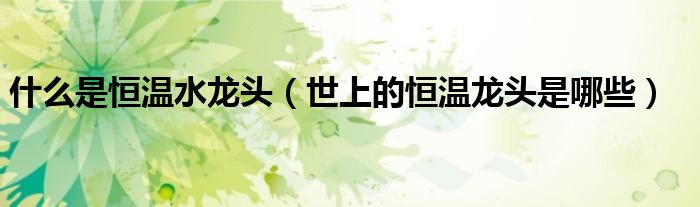 什么是恒温水龙头(世上的恒温龙头是哪些)