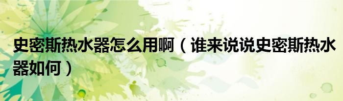 导读 大家好,精选小编来为大家解答以上的问题。史密斯热水器怎么用啊,谁来说说史密斯热水器如何很多人还不知道,现在让我们一起来看看吧!1、