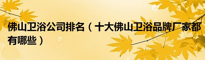 导读 大家好,精选小编来为大家解答以上的问题。佛山卫浴公司排名,十大佛山卫浴品牌厂家都有哪些很多人还不知道,现在让我们一起来看看吧!1、