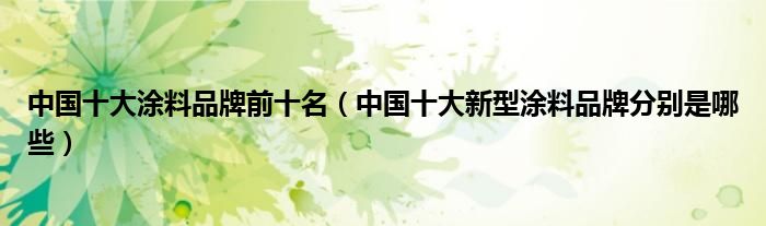 导读 大家好,精选小编来为大家解答以上的问题。中国十大涂料品牌前十名,中国十大新型涂料品牌分别是哪些很多人还不知道,现在让我们一起来看看