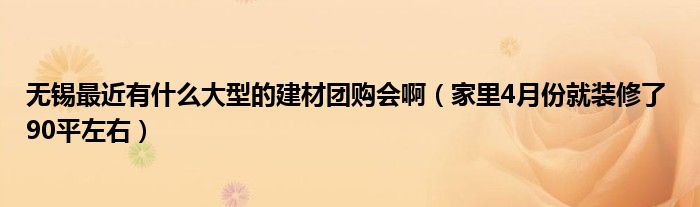 导读 大家好,小编慧慧来为大家解答以上的问题。无锡最近有什么大型的建材团购会啊,家里4月份就装修了 90平左右很多人还不知道,现在让我们一