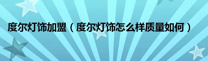 度尔灯饰加盟(度尔灯饰怎么样质量如何)