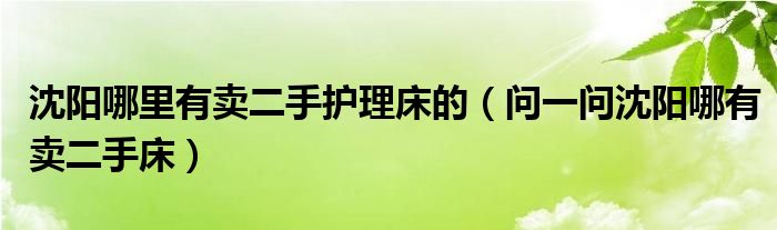 导读 大家好,精选小编来为大家解答以上的问题。沈阳哪里有卖二手护理床的,问一问沈阳哪有卖二手床很多人还不知道,现在让我们一起来看看吧!1