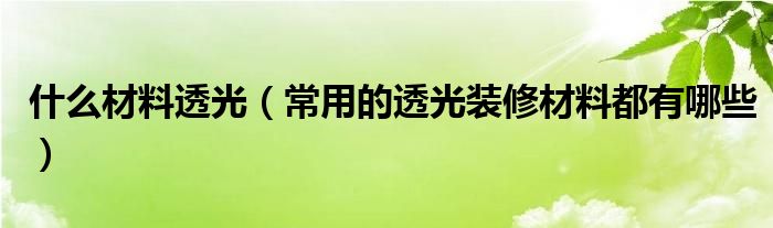 导读 大家好,精选小编来为大家解答以上的问题。什么材料透光,常用的透光装修材料都有哪些很多人还不知道,现在让我们一起来看看吧!1、装修透