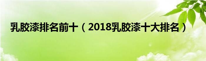 乳胶漆排名前十(2018乳胶漆十大排名)
