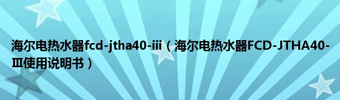 海尔电热水器fcd-jtha40-iii(海尔电热水器FCD-JTHA40-Ⅲ使用说明书)