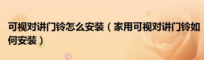 可视对讲门铃怎么安装(家用可视对讲门铃如何安装)