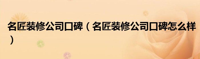 名匠装修公司口碑(名匠装修公司口碑怎么样)