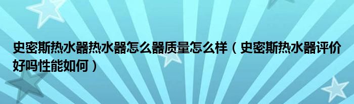 导读 大家好,精选小编来为大家解答以上的问题。史密斯热水器热水器怎么器质量怎么样,史密斯热水器评价好吗性能如何很多人还不知道,现在让我们