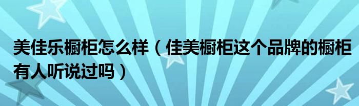 美佳乐橱柜怎么样(佳美橱柜这个品牌的橱柜有人听说过吗)