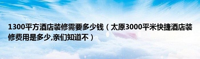 1300平方酒店装修需要多少钱(太原3000平米快捷酒店装修费用是多少,亲们知道不)
