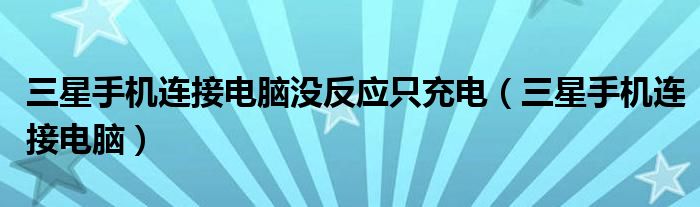 三星手机连接电脑没反应只充电(三星手机连接电脑)