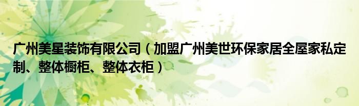 广州美星装饰有限公司(加盟广州美世环保家居全屋家私定制、整体橱柜、整体衣柜)
