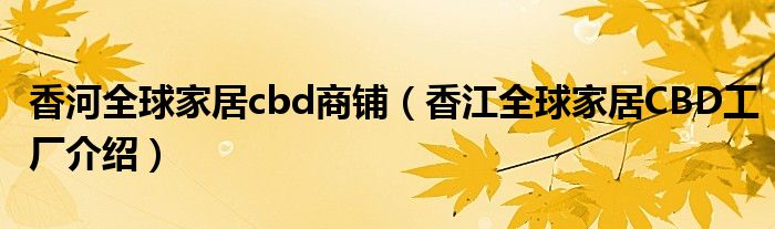 香河全球家居cbd商铺(香江全球家居CBD工厂介绍)