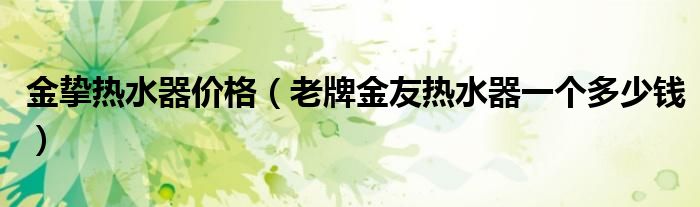 导读 大家好,精选小编来为大家解答以上的问题。金挚热水器价格,老牌金友热水器一个多少钱很多人还不知道,现在让我们一起来看看吧!1、老品牌