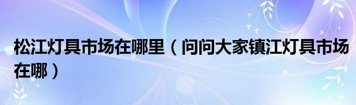松江灯具市场在哪里(问问大家镇江灯具市场在哪)