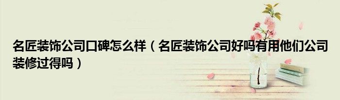 名匠装饰公司口碑怎么样(名匠装饰公司好吗有用他们公司装修过得吗)