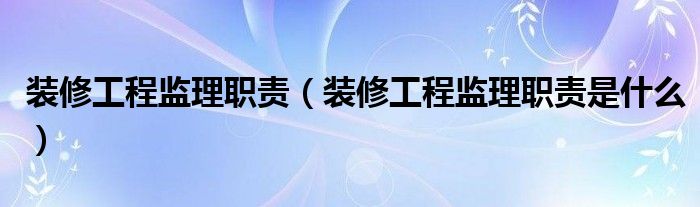 大家好,精选小编来为大家解答以上的问题。装修工程监理职责,装修工程监理职责是什么很多人还不知道,现在让我们一起来看看吧!