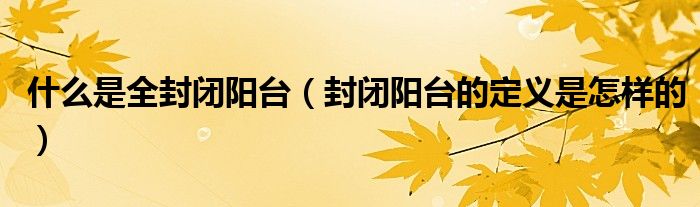 什么是全封闭阳台(封闭阳台的定义是怎样的)