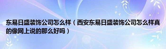 东易日盛装饰公司怎么样(西安东易日盛装饰公司怎么样真的像网上说的那么好吗)