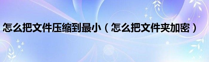 怎么把文件压缩到最小(怎么把文件夹加密)