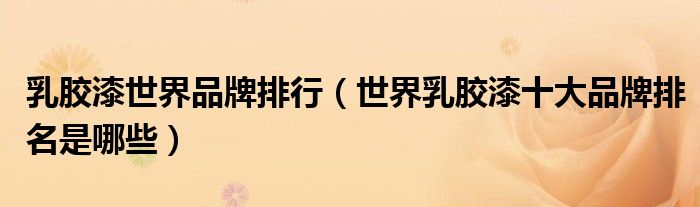 导读 大家好,精选小编来为大家解答以上的问题。乳胶漆世界品牌排行,世界乳胶漆十大品牌排名是哪些很多人还不知道,现在让我们一起来看看吧!1