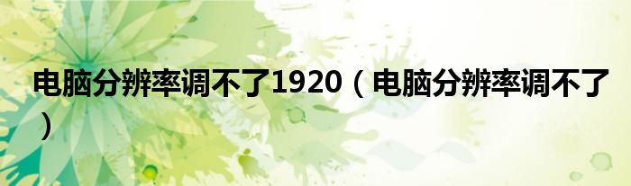 电脑分辨率调不了1920(电脑分辨率调不了)