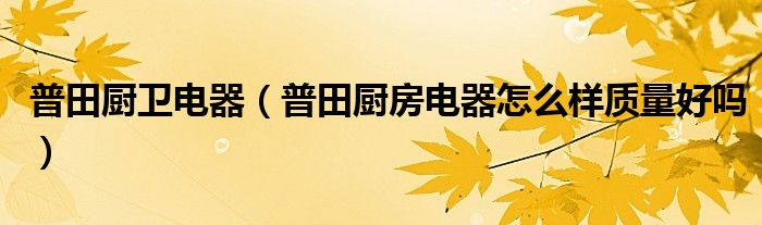 普田厨卫电器(普田厨房电器怎么样质量好吗)