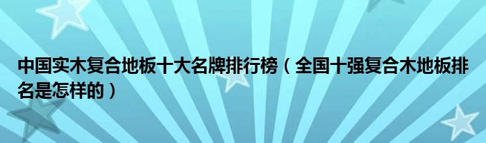 导读 大家好,精选小编来为大家解答以上的问题。中国实木复合地板十大名牌排行榜,全国十强复合木地板排名是怎样的很多人还不知道,现在让我们一
