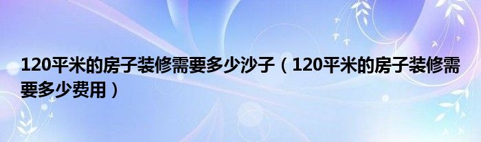 导读 大家好,精选小编来为大家解答以上的问题。120平米的房子装修需要多少沙子,120平米的房子装修需要多少费用很多人还不知道,现在让我们一起