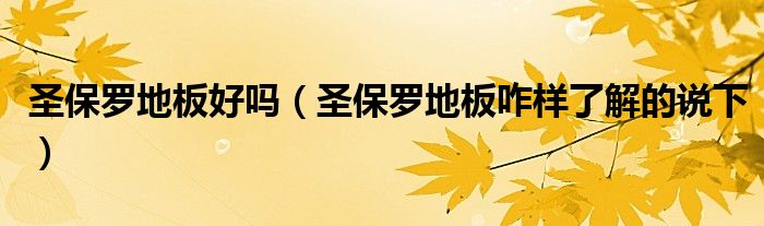 圣保罗地板好吗(圣保罗地板咋样了解的说下)