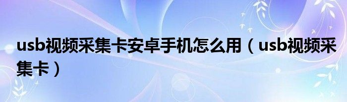 usb视频采集卡安卓手机怎么用(usb视频采集卡)