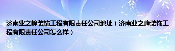 导读 大家好,精选小编来为大家解答以上的问题。济南业之峰装饰工程有限责任公司地址,济南业之峰装饰工程有限责任公司怎么样很多人还不知道,现