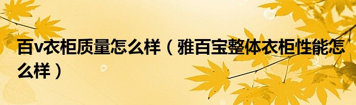 大家好,精选小编来为大家解答以上的问题。百v衣柜质量怎么样,雅百宝整体衣柜性能怎么样很多人还不知道,现在让我们一起来看看吧!