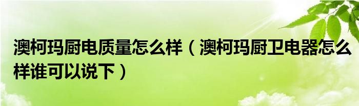 澳柯玛厨电质量怎么样(澳柯玛厨卫电器怎么样谁可以说下)