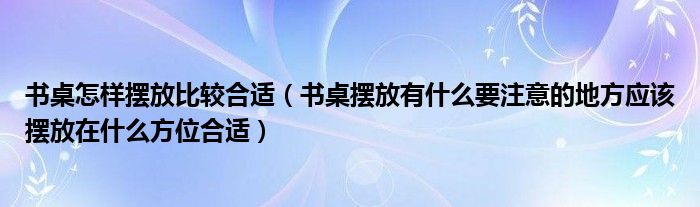 导读 大家好,精选小编来为大家解答以上的问题。书桌怎样摆放比较合适,书桌摆放有什么要注意的地方应该摆放在什么方位合适很多人还不知道,现在