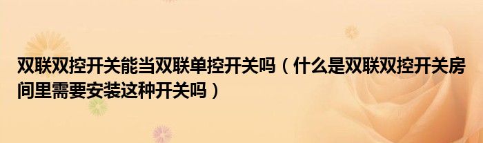 导读 大家好,精选小编来为大家解答以上的问题。双联双控开关能当双联单控开关吗,什么是双联双控开关房间里需要安装这种开关吗很多人还不知道,