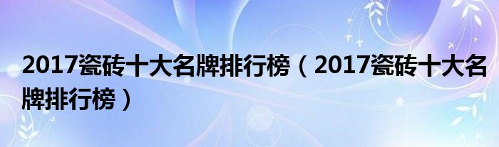 2017瓷砖十大名牌排行榜(2017瓷砖十大名牌排行榜)