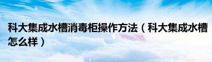 科大集成水槽消毒柜操作方法(科大集成水槽怎么样)