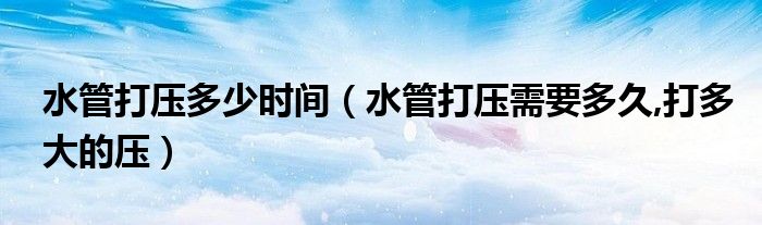 大家好,精选小编来为大家解答以上的问题。水管打压多少时间,水管打压需要多久,打多大的压很多人还不知道,现在让我们一起来看看吧!