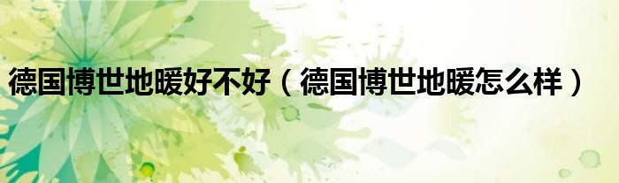 德国博世地暖好不好(德国博世地暖怎么样)